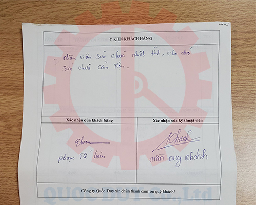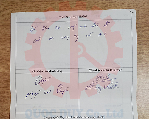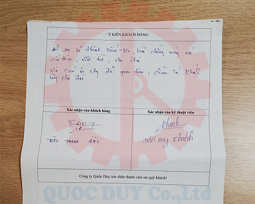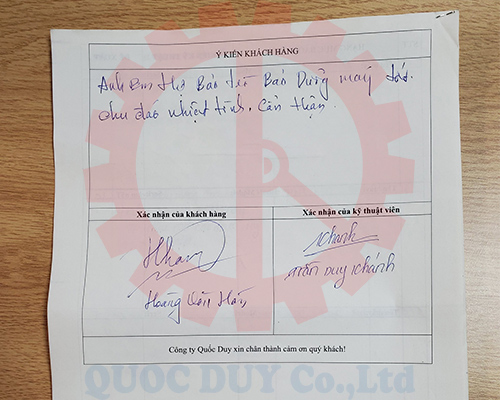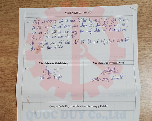 Phản hồi tích cực của khách hàng về dịch vụ bảo dưỡng của Quốc Duy
