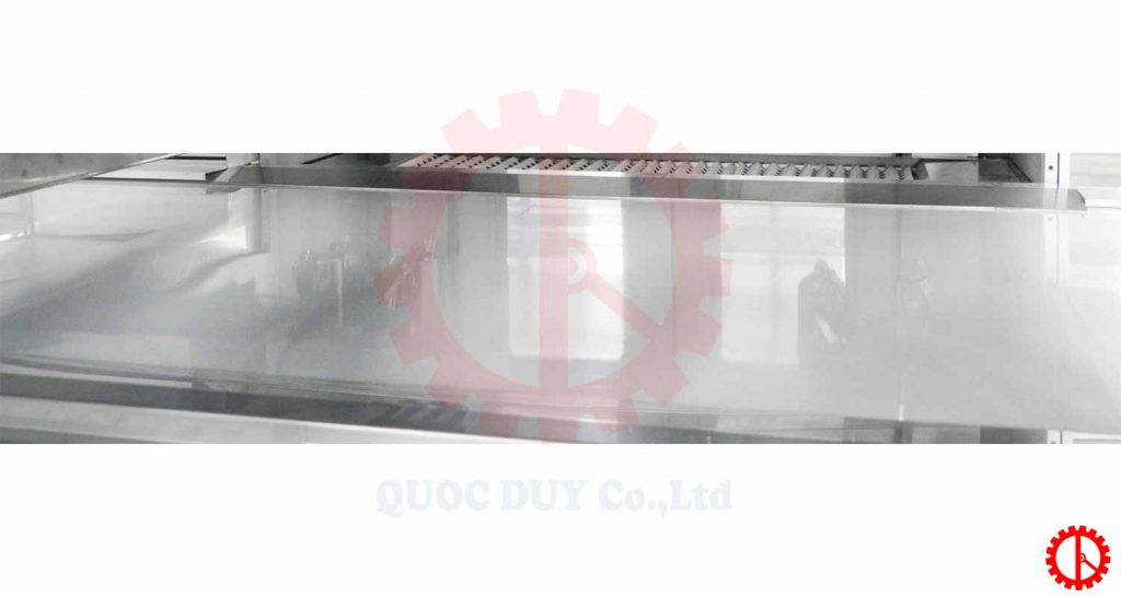 Hệ thống gia nhiệt sử dụng đèn hồng ngoại, giúp làm khô nhanh và đều, tăng hiệu quả xử lý bề mặt.