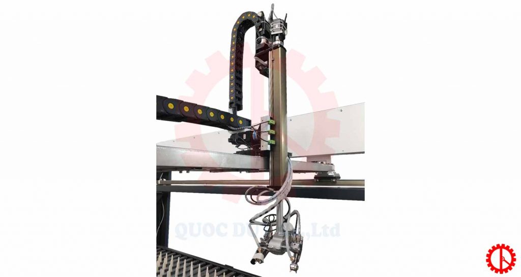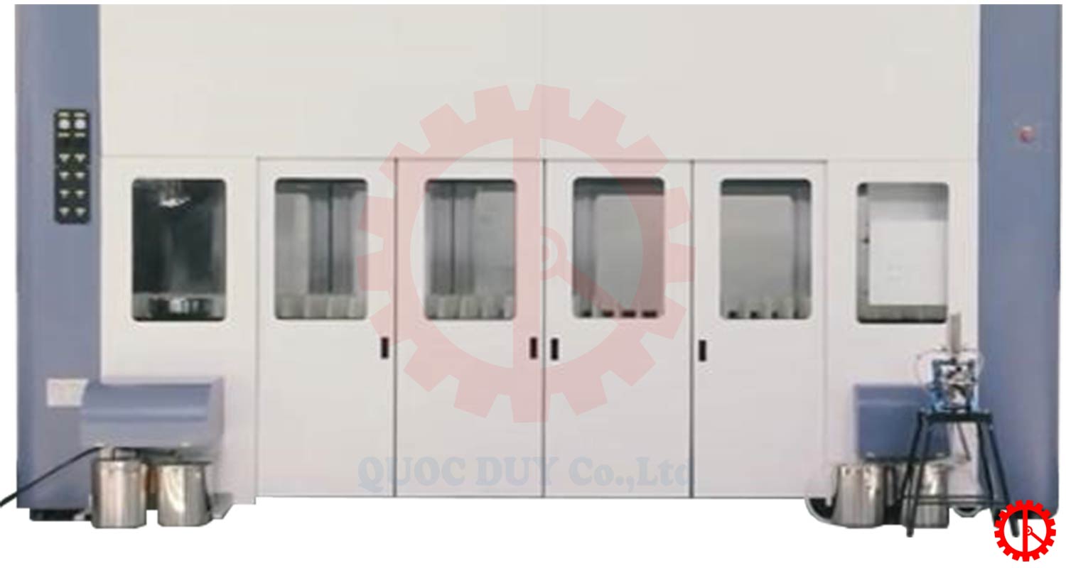Máy được trang bị 2 cụm phun sơn, điều khiển bằng hệ thống servo giúp kiểm soát chính xác quá trình phun.