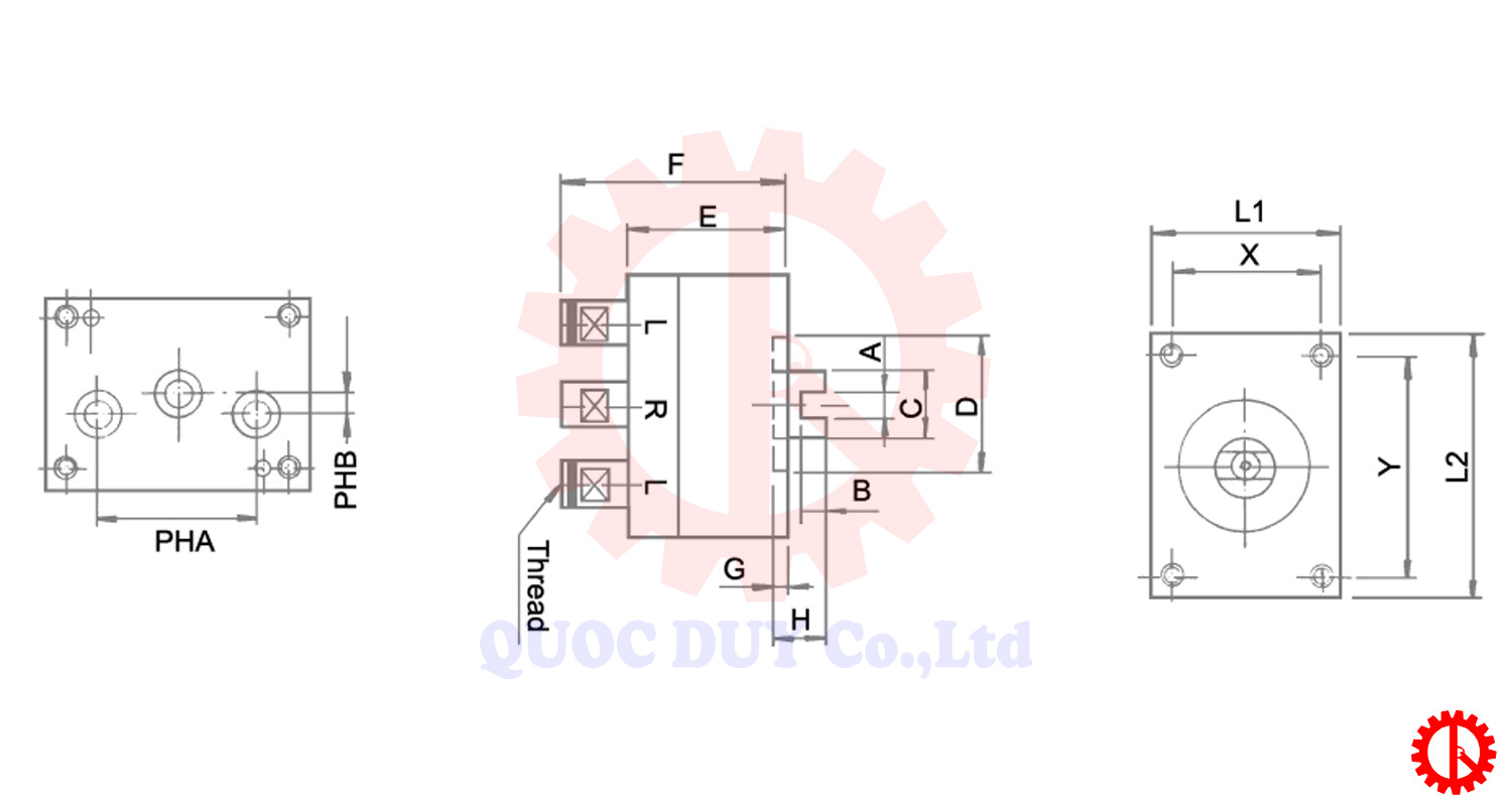 | Model | A | B | C | D | E | F | G | H | L1 | L2 | X | Y | Spindle Type | Weight (kg) | |