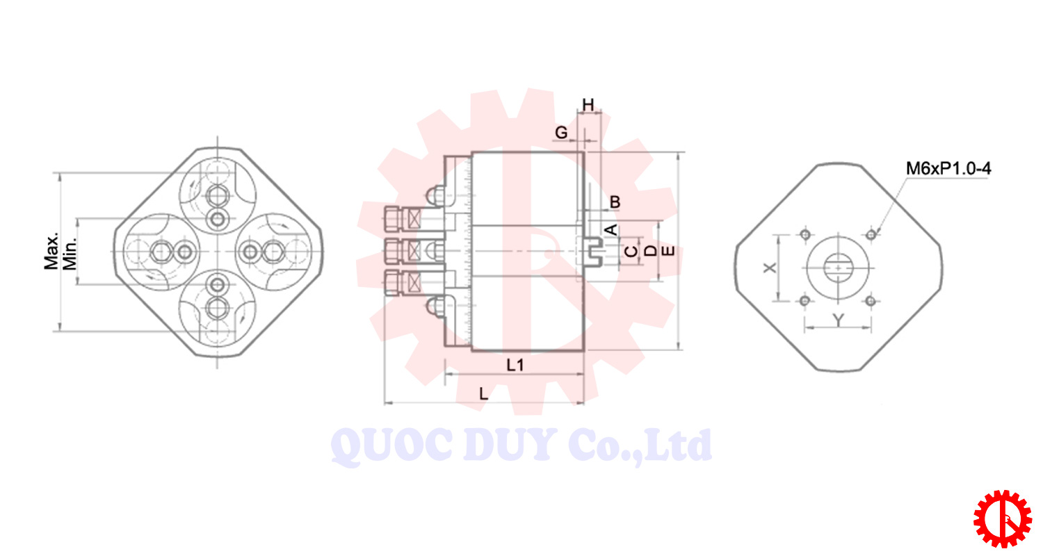 A | B | C | D | E | G | H | L1 | L | X | Y | Nhỏ nhất | Lớn nhất | Công suất lớn nhất | |