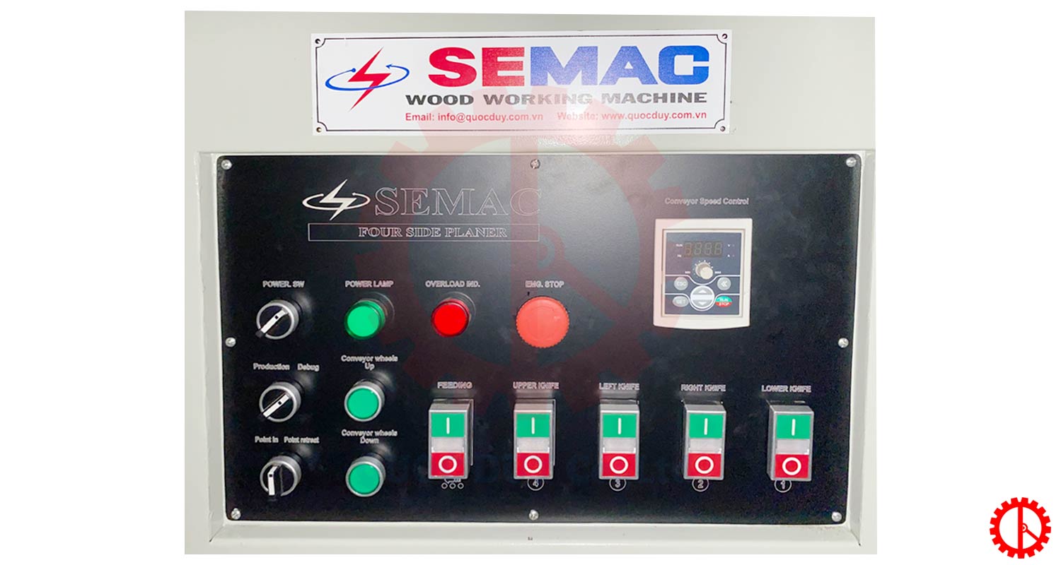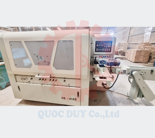 Máy bào gỗ 4 mặt 4 trục dao – SMVK B418D mang thương hiệu SEMAC – Quốc Duy. Đây là dòng sản phẩm máy bào 4 mặt tối ưu nhất hiện nay. Máy thực hiện bào nhẵn mịn 4 mặt phôi trong 1 lần cấp phôi. Bên cạnh đó, máy trang bị hệ thống tấm chắn đảm bảo an toàn cho việc vận hành.