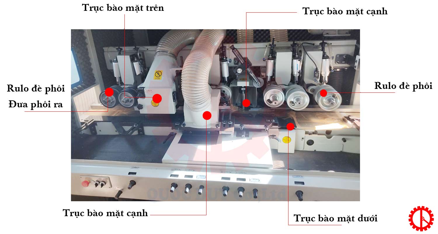 Giới thiệu chi tiết máy bào gỗ 4 mặt 4 trục dao option băng tải nạp phôi