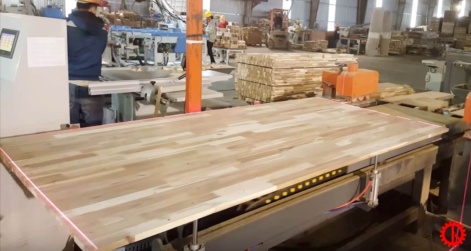 - Công nhân chỉ cần đặt phôi vào, máy sẽ tự động thực hiện cắt dọc, ngang, xếp ván đầu ra.