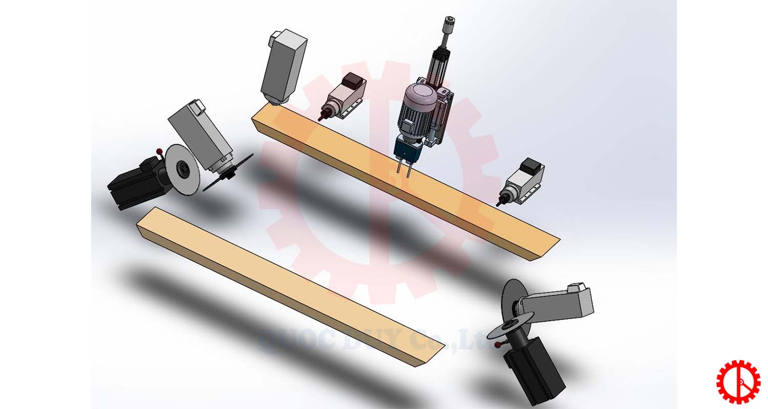 - Máy cắt phay 2 đầu gia công đa năng thanh gỗ lớn: khoan, cắt, phay rãnh, tạo mộng âm… hoàn thiện trong 1 lần gá phôi, phù hợp khung cửa, nội thất, sản phẩm đặc thù.