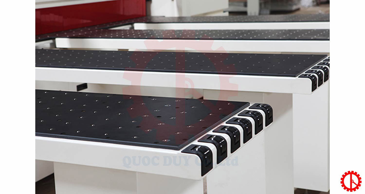 - Có bàn bi hỗ trợ đỡ phôi, bộ kẹp phôi tự động