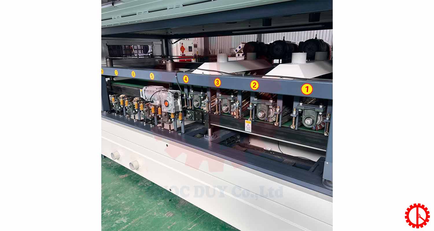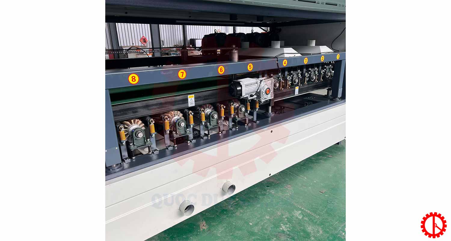 - Cơ cấu chà nhám 8 hàng trục: Chà nhám trên dưới đa dạng vật liệu, chà nhám bavia hiệu quả.