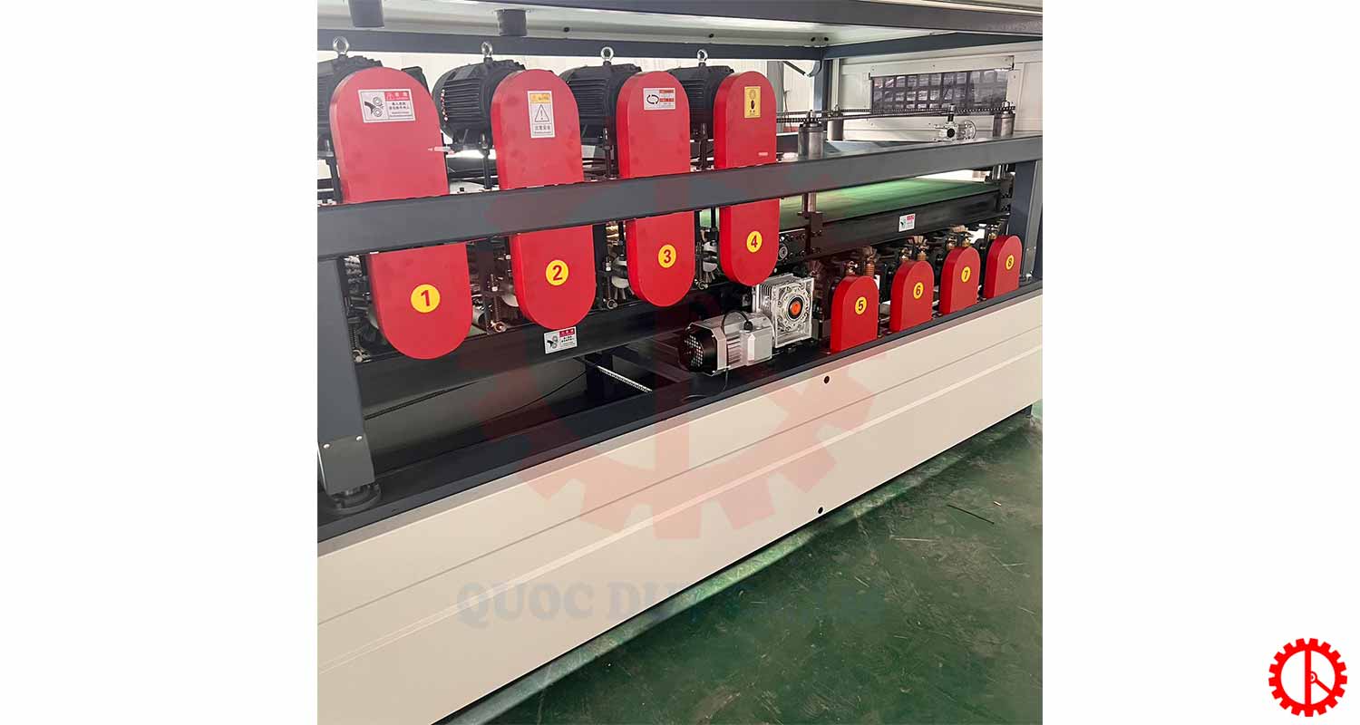 - Cơ cấu trục: 4 trục chà nhám mặt trên, 4 trục chà nhám mặt dưới.