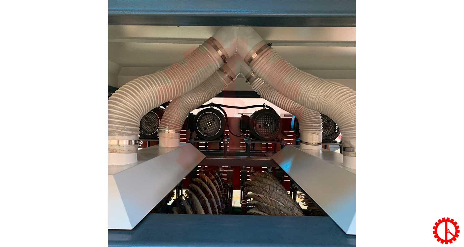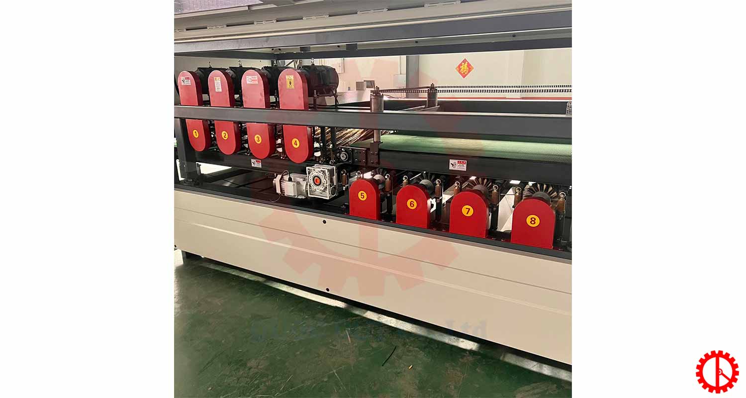 Máy chà nhám chổi thùng 2 mặt trên dưới 8 trục được cấu thành bởi 4 trục chà nhám phía trên và 4 trục chà nhám phía dưới giúp máy có thể chà nhám cùng lúc 2 mặt của sản phẩm trong 1 lần đưa phôi từ đó tối ưu hóa quy trình sản xuất.