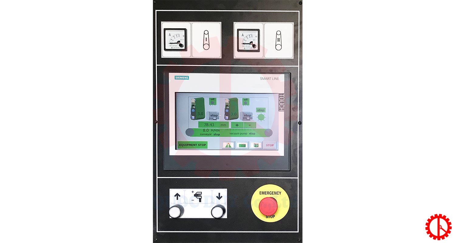 – Màn hình cảm ứng, dễ dàng thiết lập thông số: độ dày phôi, tốc độ băng tải,…
