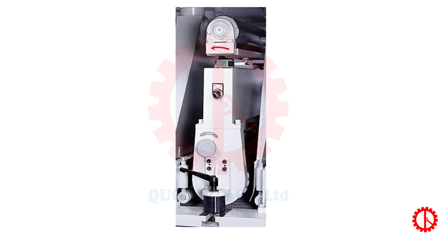 Việc theo dõi băng tải được điều khiển bằng khí nén để đảm bảo quá trình chà nhám ổn định, công suất cao.