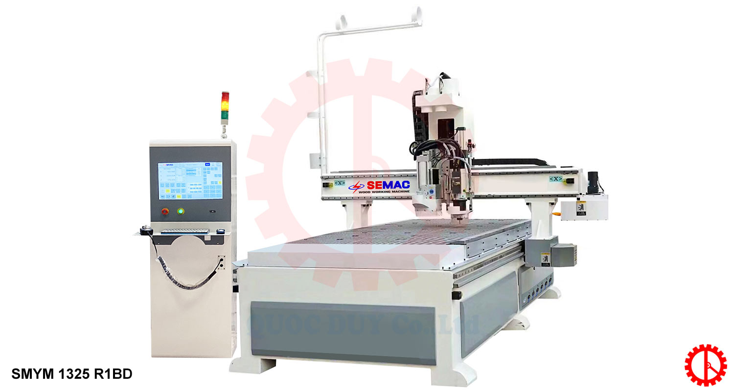 Máy cnc nesting 1325 thay dao tự động thương hiệu SEMAC – Quốc Duy ứng dụng công nghệ 4.0, giúp tự động hóa dây chuyền sản xuất. giảm tối đa chi phí nhân công, nâng cao năng suất vượt trội. Đây là sự lựa chọn hoàn hảo cho các đơn vị sản xuất nội thất gỗ công nghiệp.
