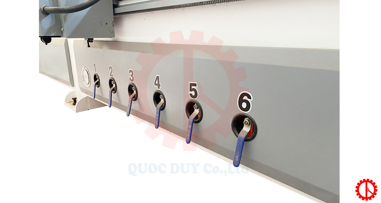 - Mặt bàn chia làm 6 vùng hút chân không công suất cao 7.5 kw ổn định phôi trong suốt thời gian gia công