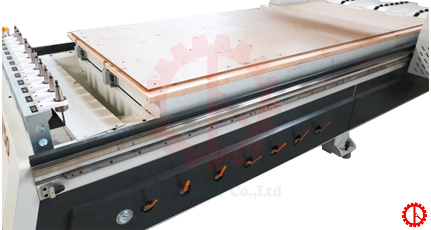 Bàn làm việc được trang bị hệ thống hút chân không giúp giữ vật liệu chắc chắn trong suốt quá trình gia công.