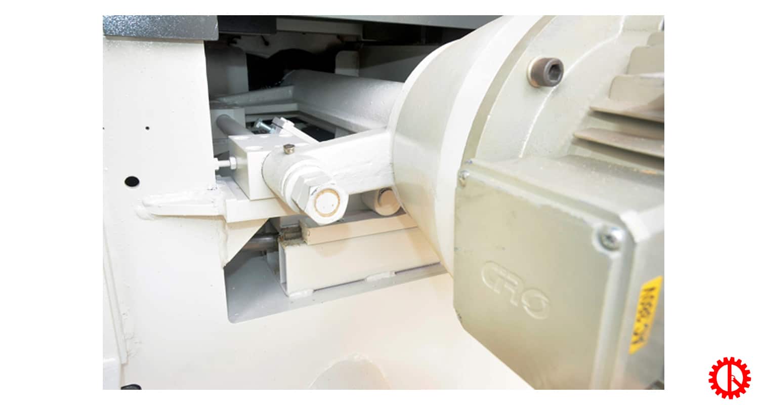 - Bên cạnh đó máy được trang bị hệ thống thanh thép chắn giúp việc chống đánh trả phôi an toàn cho người sử dụng