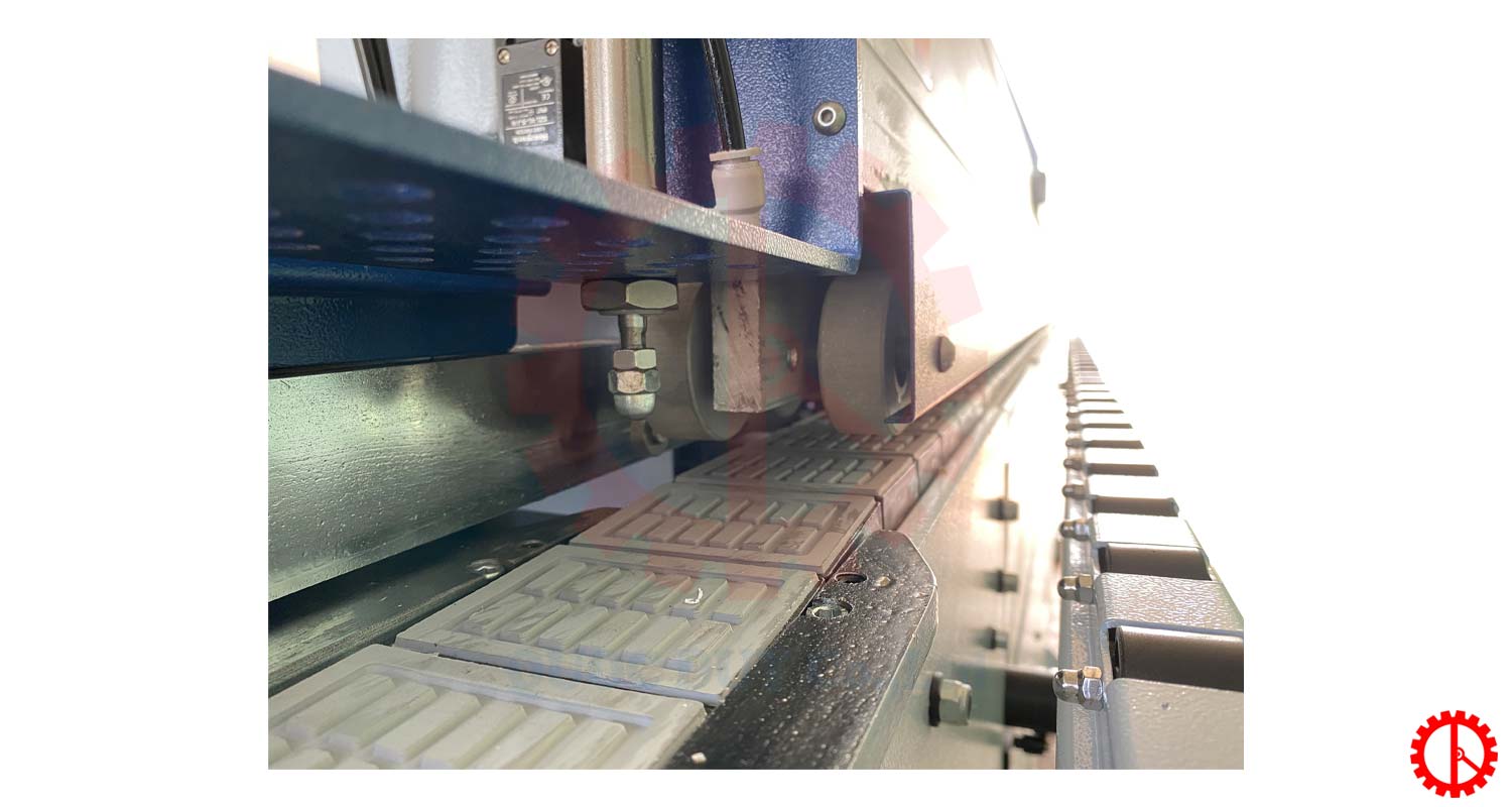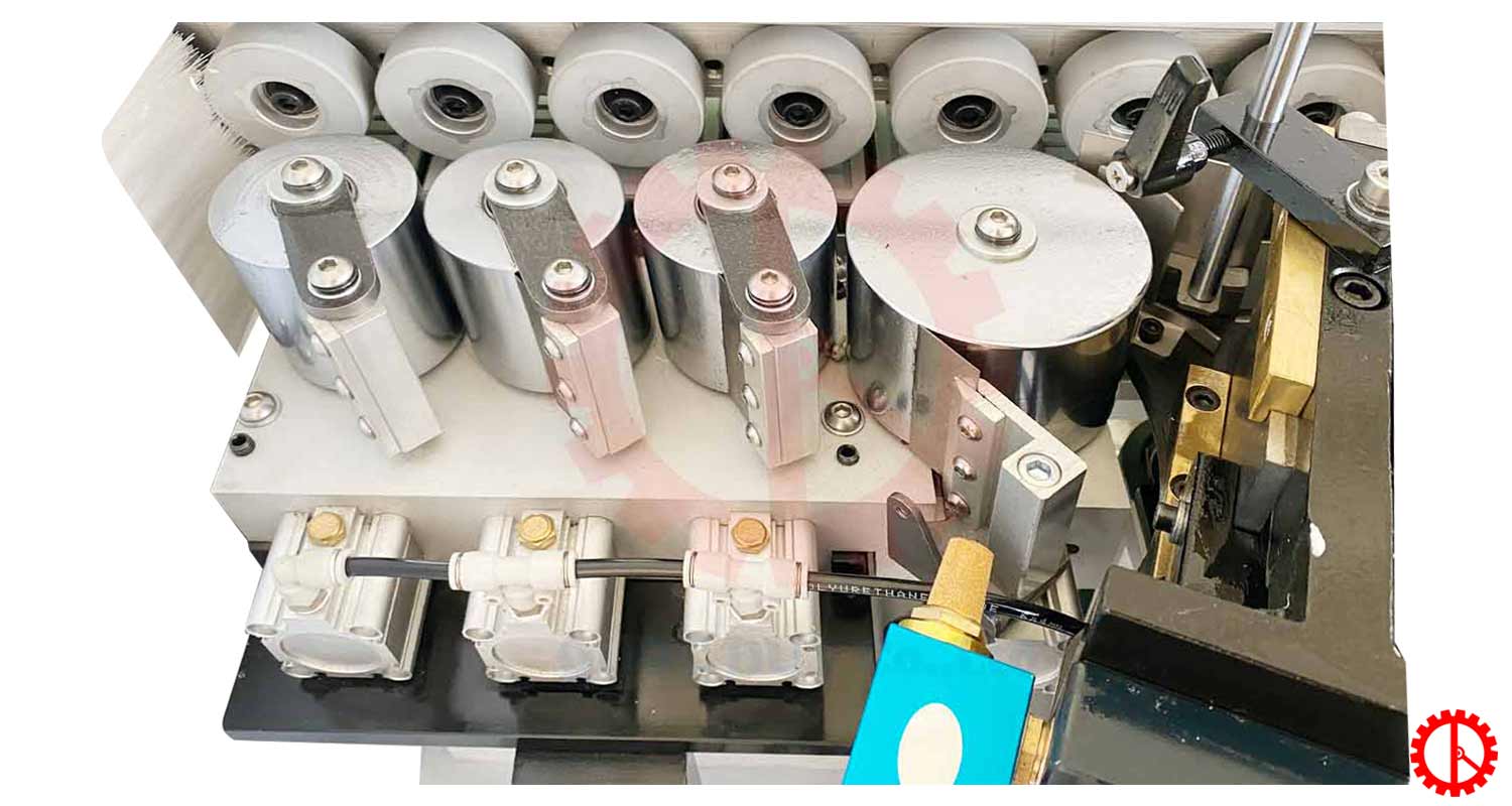 - Bộ phận lăn keo – dán nẹp được thông qua bởi một cấu trúc đặc biệt. Keo dán đều lên nẹp và đảm bảo keo được kết dính cao.