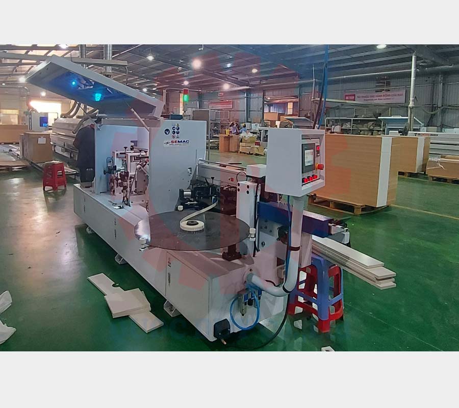 Máy dán cạnh 6 chức năng – SM 360 là dòng máy dán cạnh đa chức năng vận hành tự động. Thực hiện 6 chức năng: lăn keo – ép chỉ, cắt đầu – đuôi, xén mép trên – dưới, cạo keo thừa, phun dung dịch, đánh bóng nhanh và chính xác. Máy dán cạnh tự động là siêu phẩm được nhiều doanh nghiệp lựa chọn, bởi công năng đa dạng, tiết kiệm chi phí nhân công.