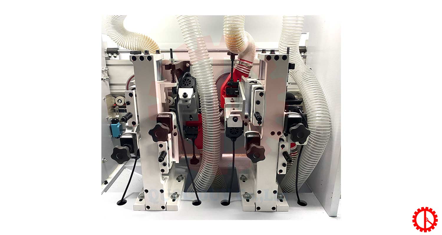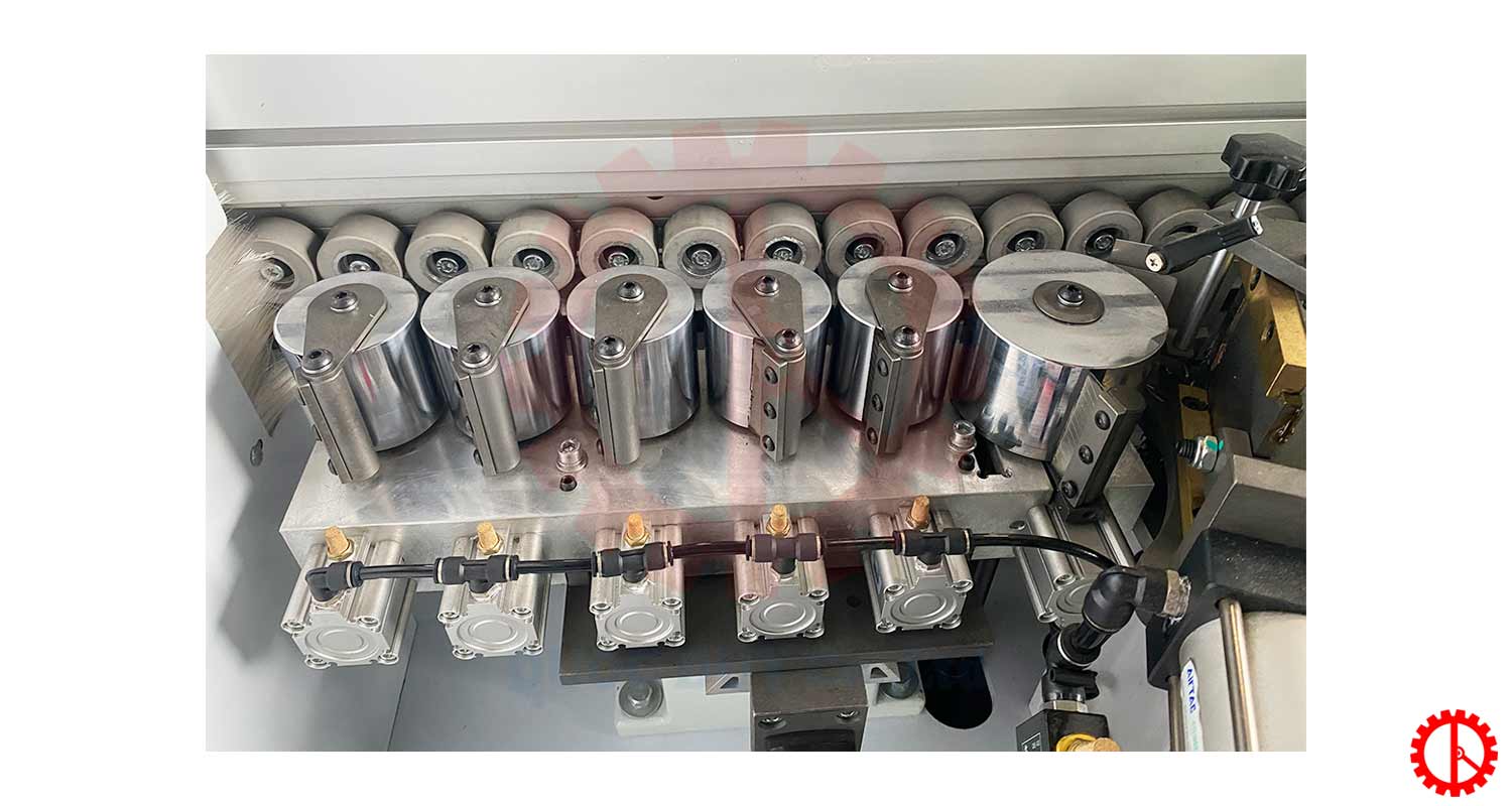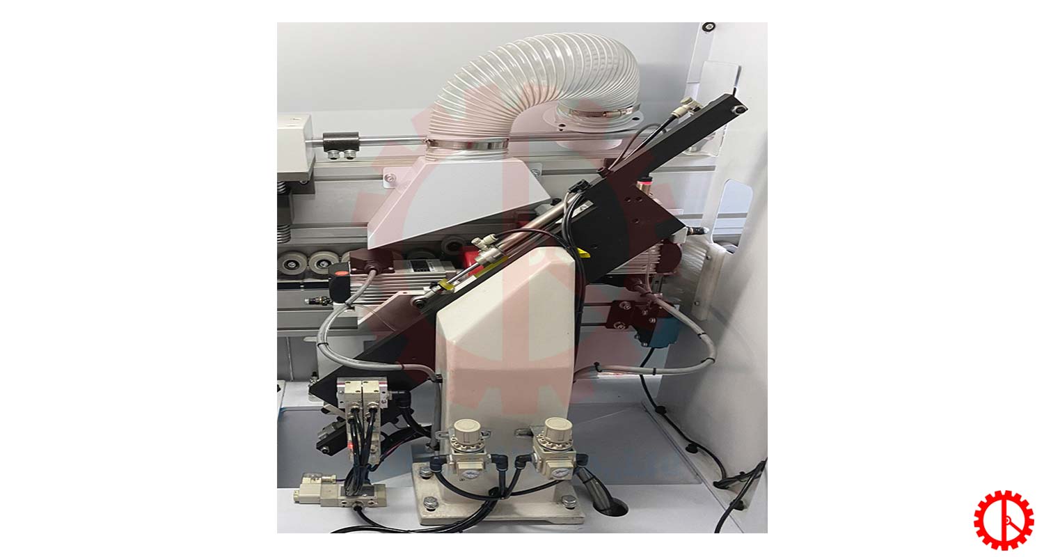 - Trang bị hệ thống khí nóng được dựa trên kết quả nghiên cứu nhiều năm. Nó có thể thông qua nguyên lí nén nhiệt để áp không khí lên dải cạnh, đảm bảo rằng các mối nối giữa cạnh ván & chỉ dán hoàn toàn không có đường keo.