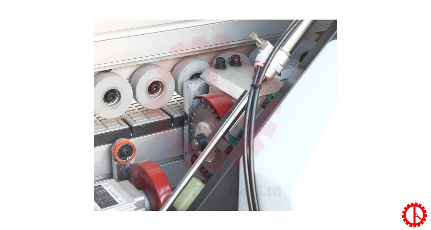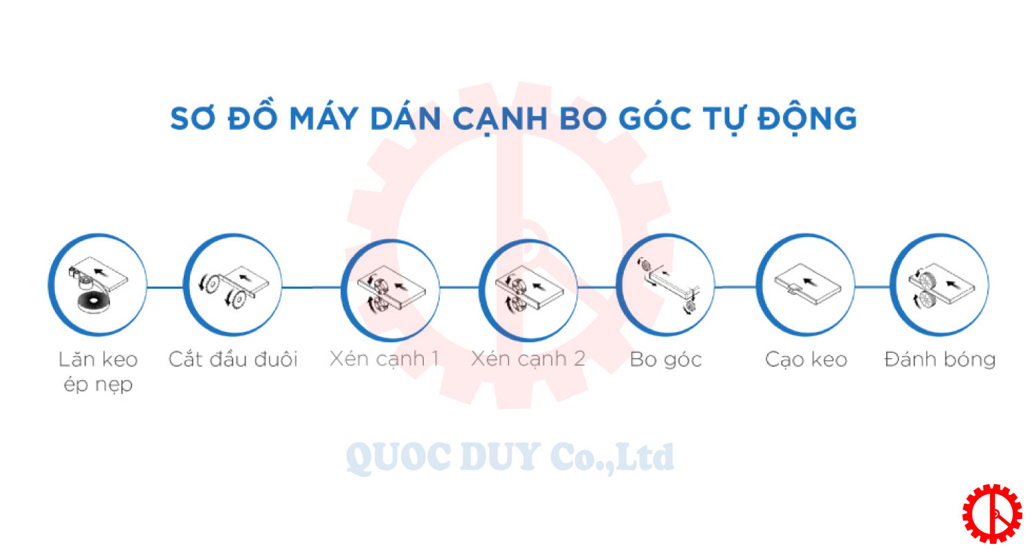 - Máy kết hợp 7 chức năng: Lăn keo – Ép nẹp – Cắt chỉ – Cắt đầu đuôi – Xén cạnh – Bo góc – Đánh bóng giúp phôi sau gia công đạt chất lượng cao.