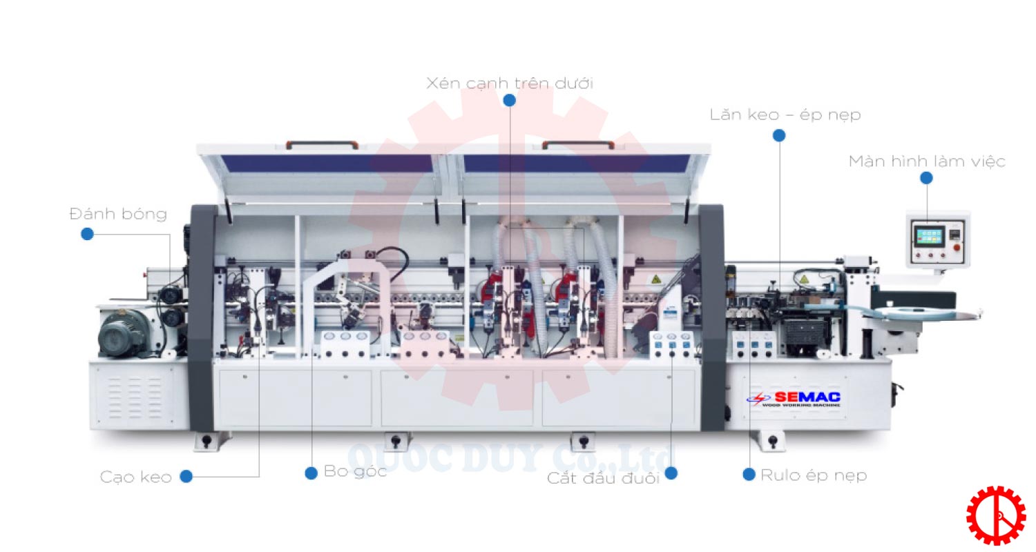 Máy dán cạnh bo góc mang thương hiệu SEMAC – QUỐC DUY được láp ráp theo tiêu chuẩn riêng chúng tôi đưa ra hoàn toàn khác so với các dòng dán cạnh đại trà. Mỗi một linh kiện đều được chọn lọc kỹ càng.