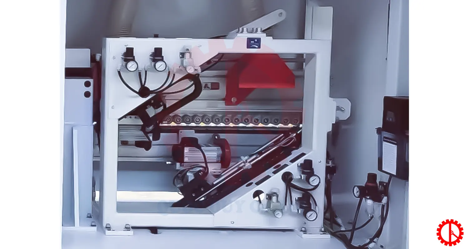 - Thiết bị điều chỉnh dao cuốn bằng khí nén để điều chỉnh viền cạnh nhanh chóng và thuận tiện hơn.