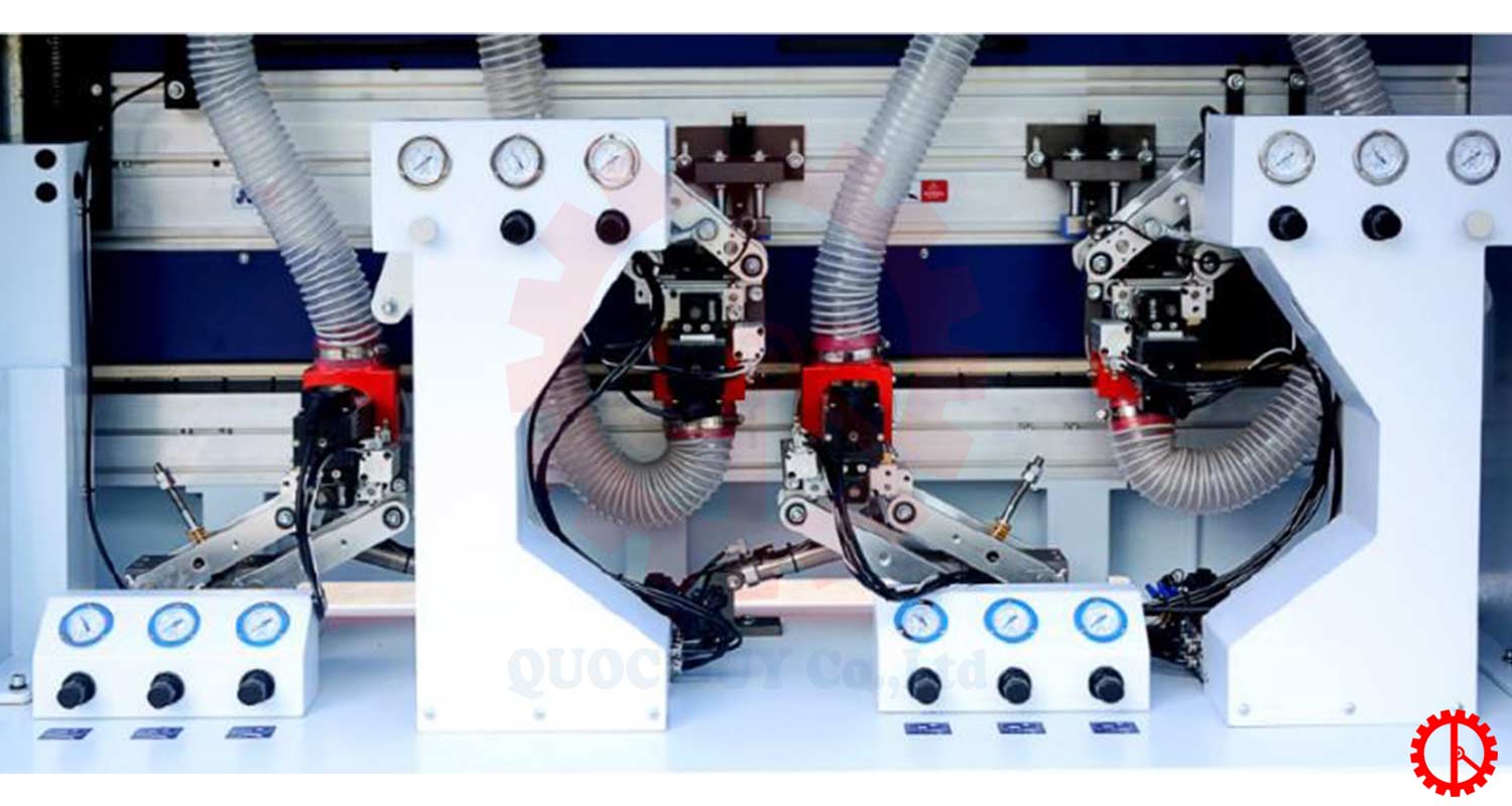 - 6 rulo ép + hai bộ bánh xe cao su ép, lực ép mạnh, dán cạnh đẹp, chuẩn, đường keo nhỏ.