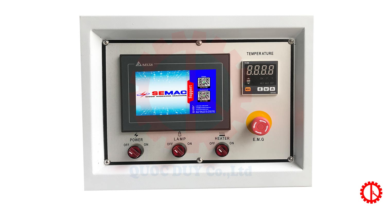 - Máy dán cạnh tự động sở hữu hệ thống linh kiện máy cao cấp : Siemen, Schneider, Airtac, Delta…