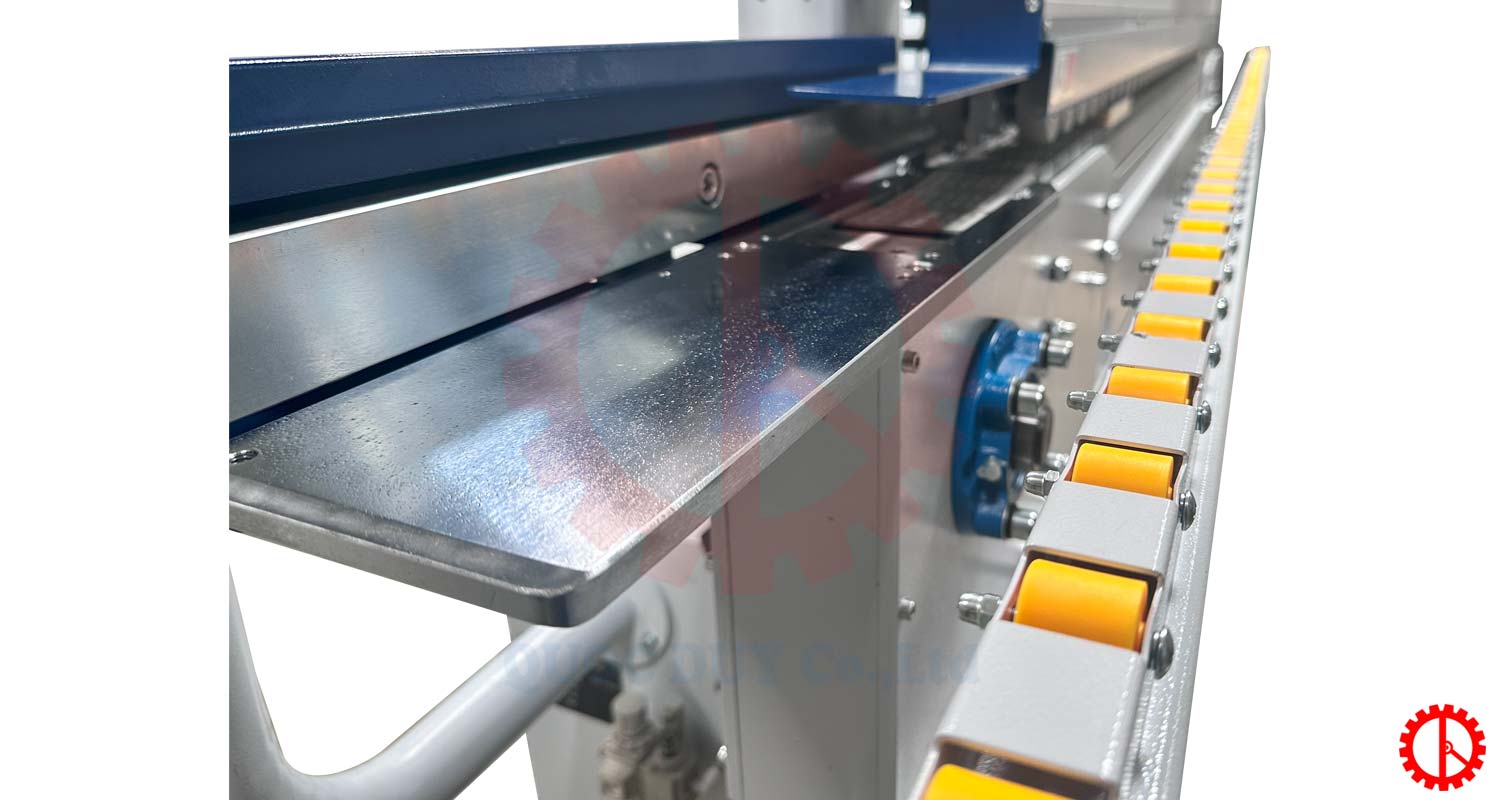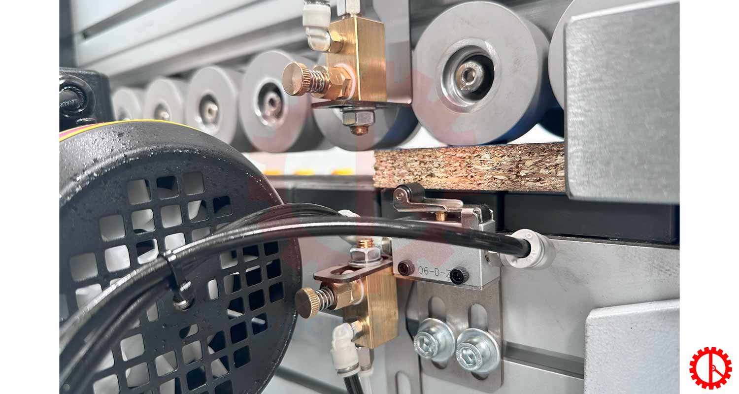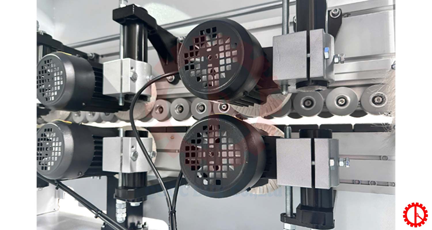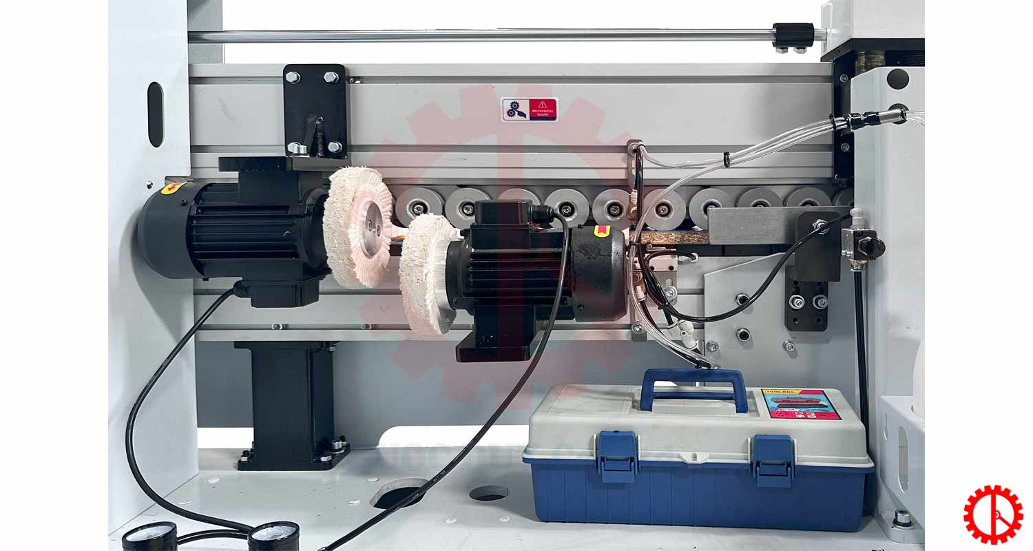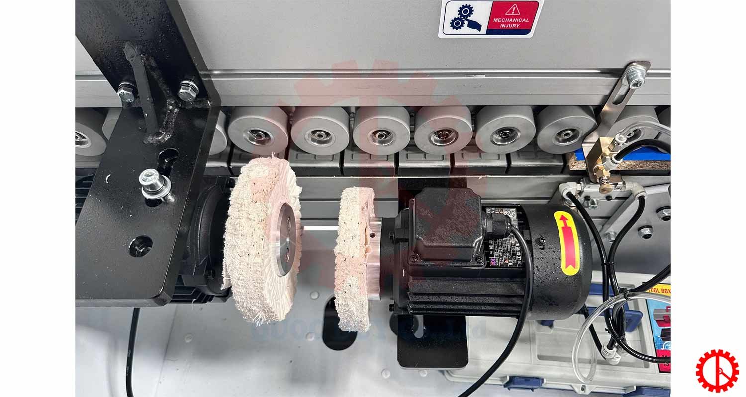 Hệ thống bánh đánh bóng được bố trí hợp lý, tạo độ đều và đẹp cho mép ván.