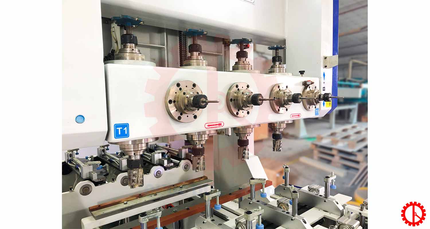 - Gia công 4 phôi cùng lúc tiết kiệm thời gian năng suất cao, 16 đầu dao xoay linh hoạt.