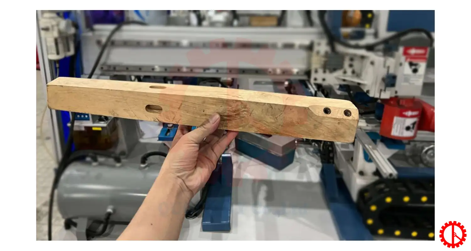 - Máy thực hiện gia công chân ghế trước với các chức năng cắt hai đầu, phay cạnh, phay mặt, khoan, cấy ốc và phay mộng âm đa chức năng…