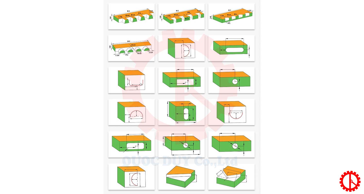 Máy có khả năng gia công đa dạng như mộng âm, rãnh tròn, mộng vuông, mộng xiên 45°, mộng đuôi én,… đáp ứng linh hoạt các yêu cầu phức tạp trong sản xuất nội thất.