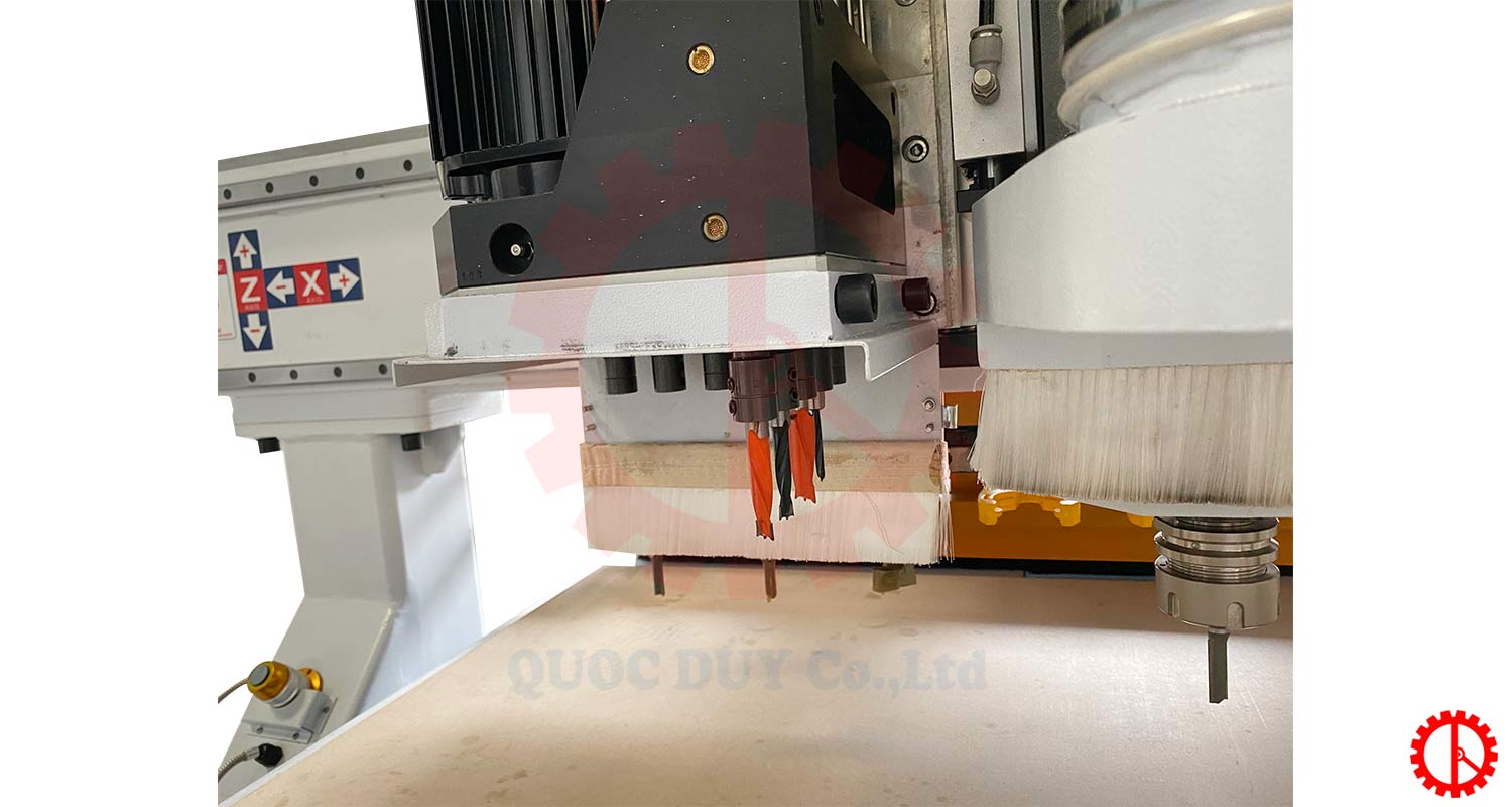 - Motor trục chính 9kw gia công tốc độ nhanh, sản phẩm bề mặt lán mịn. Máy được trang bị thêm 1 cụm khoan thực hiện các chức năng khoan