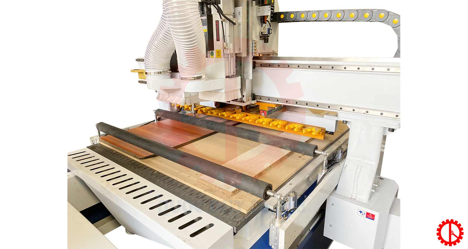 - Máy CNC nesting Trang bị 2 rulo đè phôi cho gia công ván plywood và phôi có kích thước nhỏ.