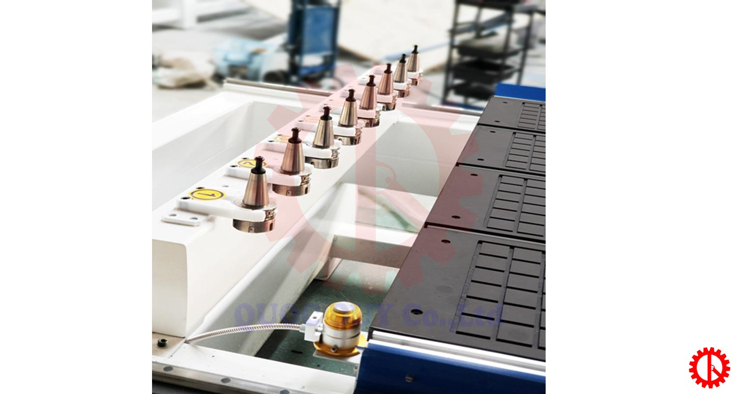 - Khay dao: khay chứa dao ngang, 12 đầu kẹp dao, thay dao tự động