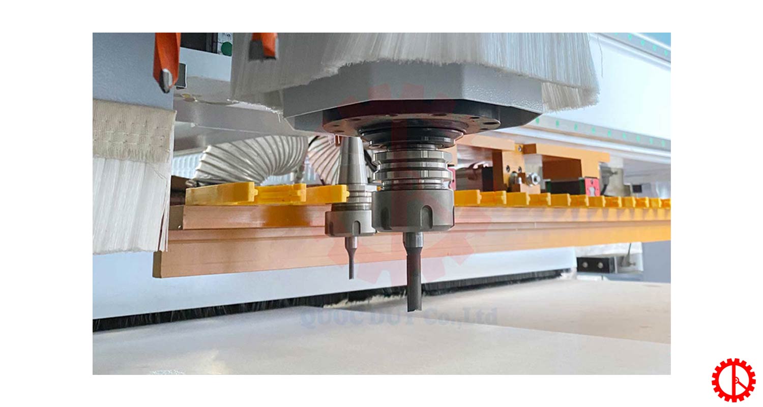 - Cụm gia công: 1 cụm router – 1 cụm đầu khoan