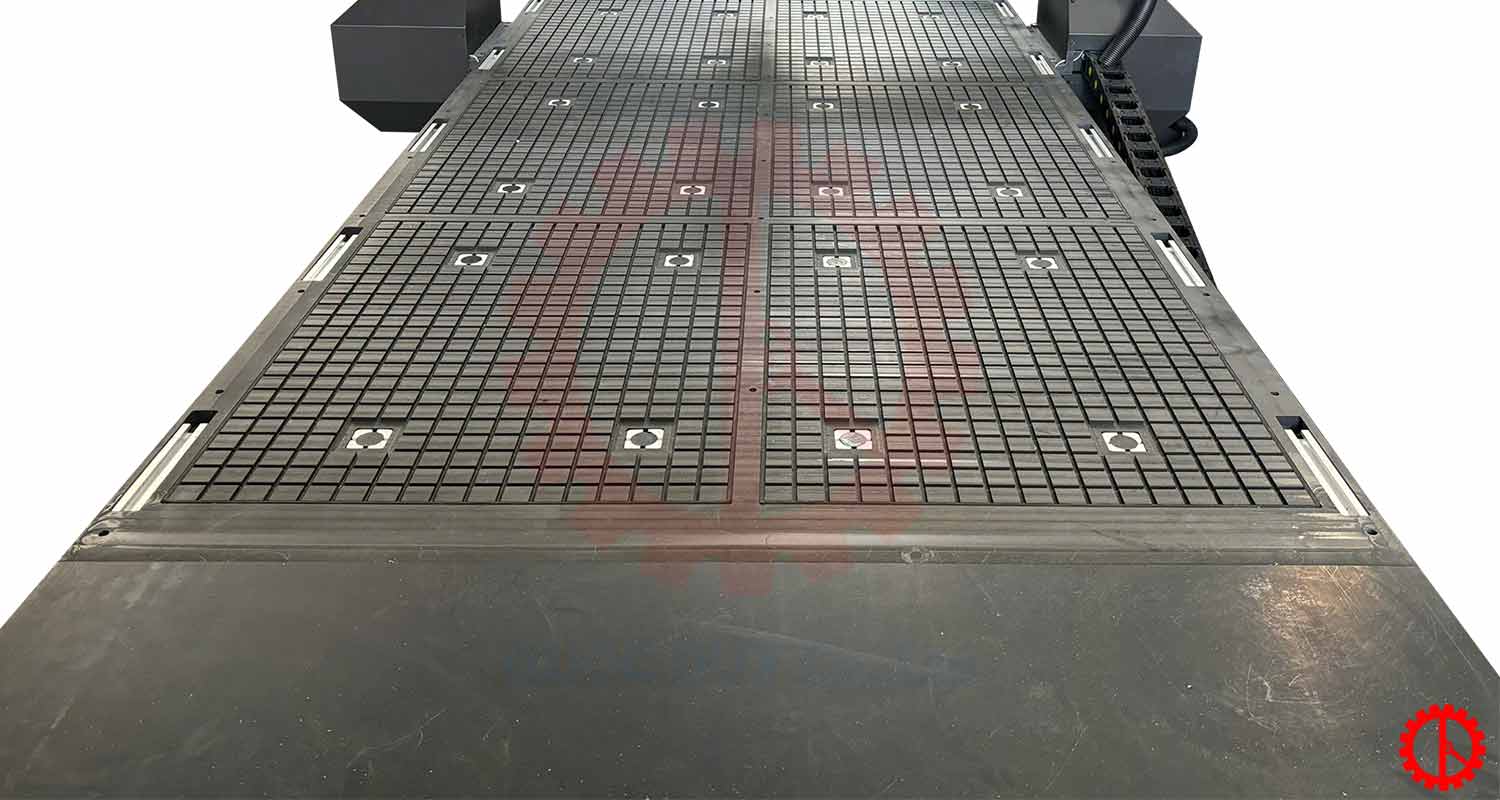 Bàn làm việc sử dụng hệ thống hút chân không, đi kèm động cơ bơm hút công suất 5.5kW.