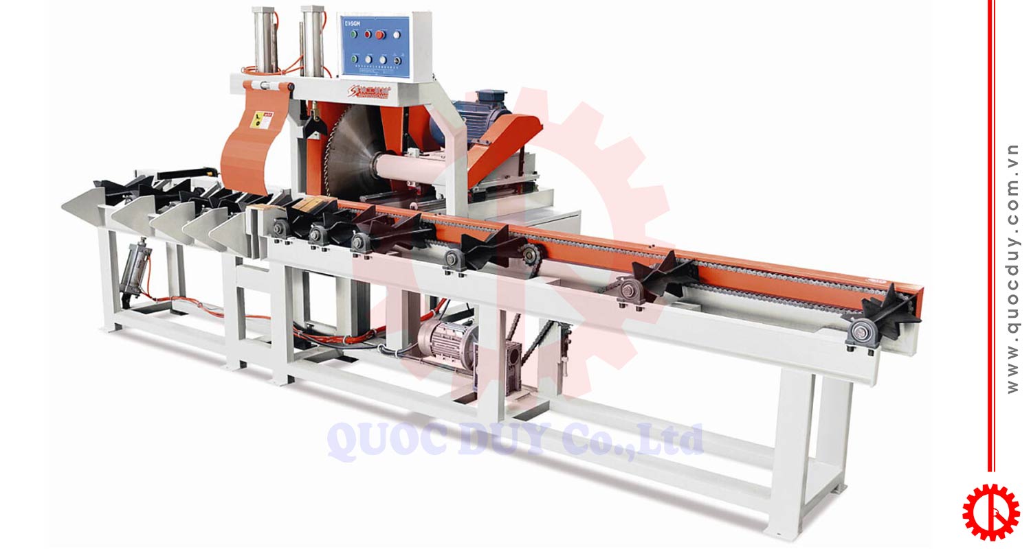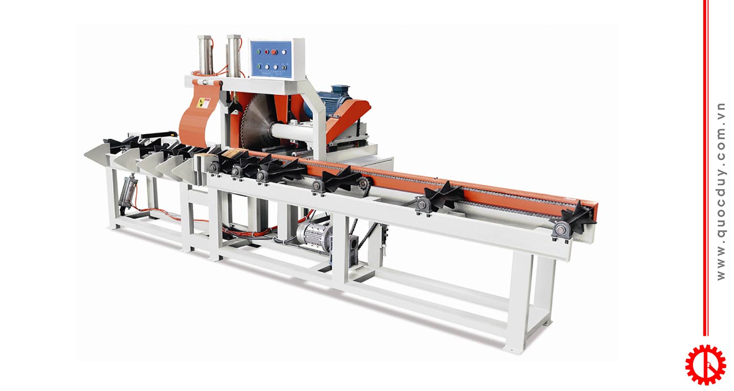 – Dùng cắt khúc gỗ dài thành những khúc gỗ ngắn với kích thước khác nhau, tự động đưa phôi và tự động cắt.