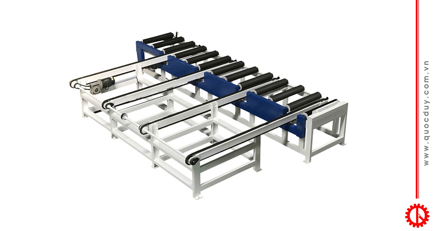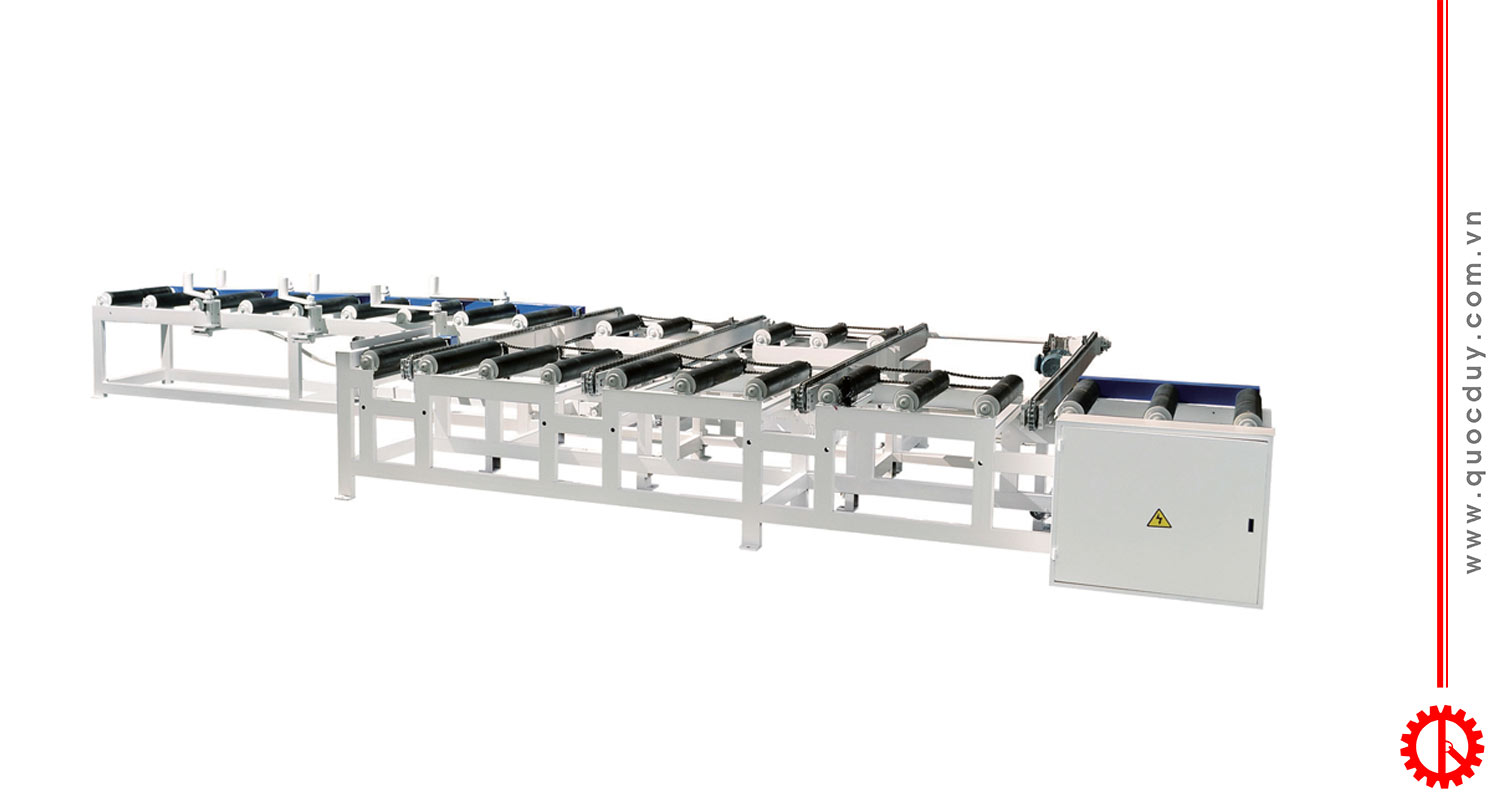 Băng tải cấp phôi, máy xẻ gỗ tròn, băng tải tách phôi, máy xẻ gỗ hộp, máy cưa rong cạnh nhiều lưỡi, Máy xẻ bìa gỗ.